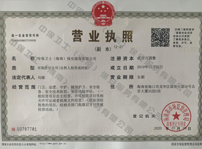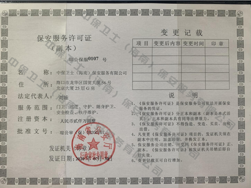 新利-新利(中国)是经海南省公安厅批准,依法持有《保安服务许可证》,提供保安服务、门卫、巡逻、守护、区域秩序维护、随身护卫、安全检查的专业化保安服务公司。